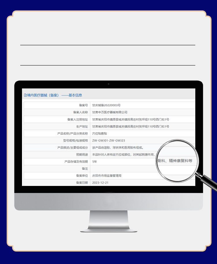 备案证适应范围明确标注针对特定穴位,起刺激作用。